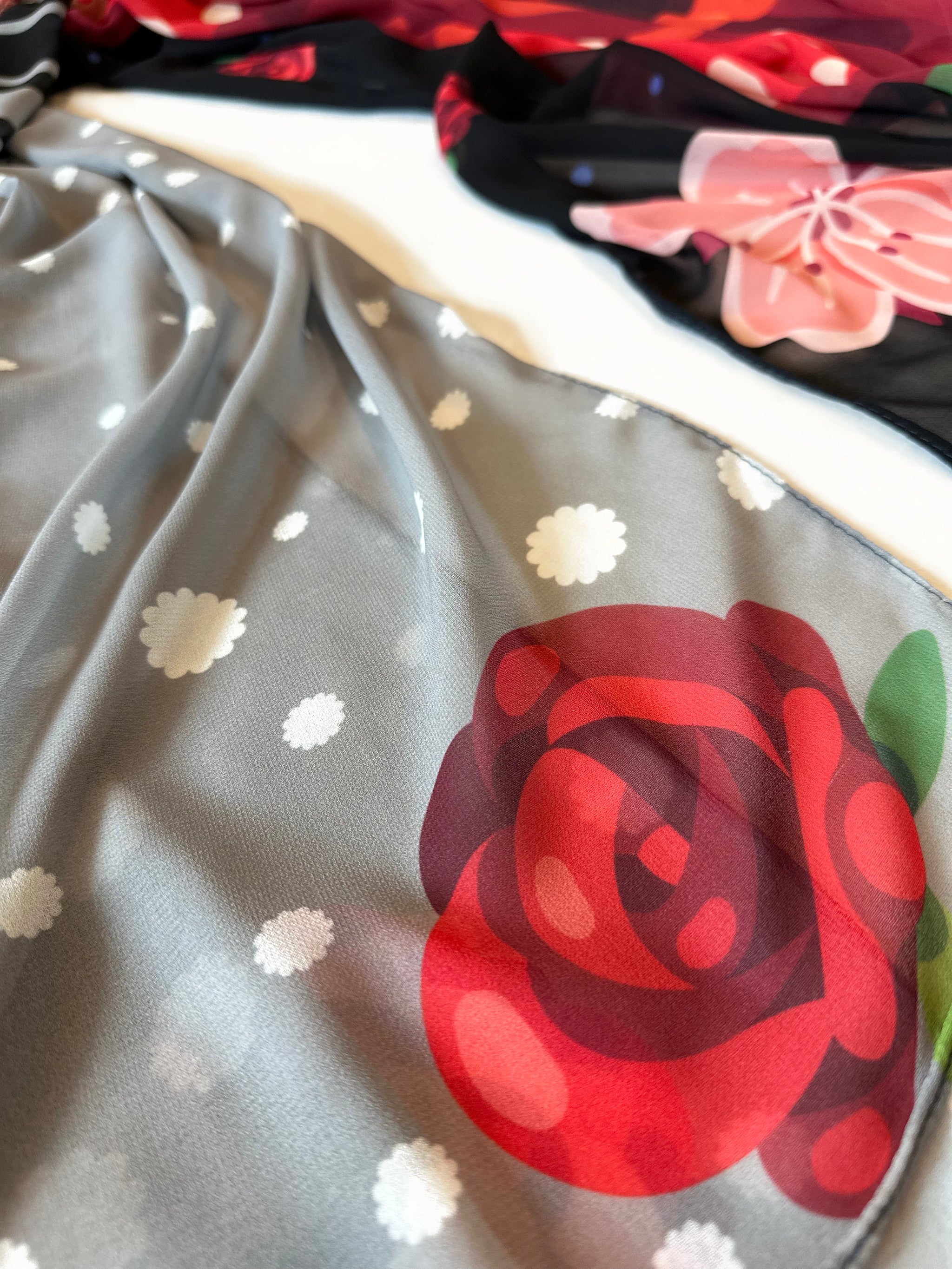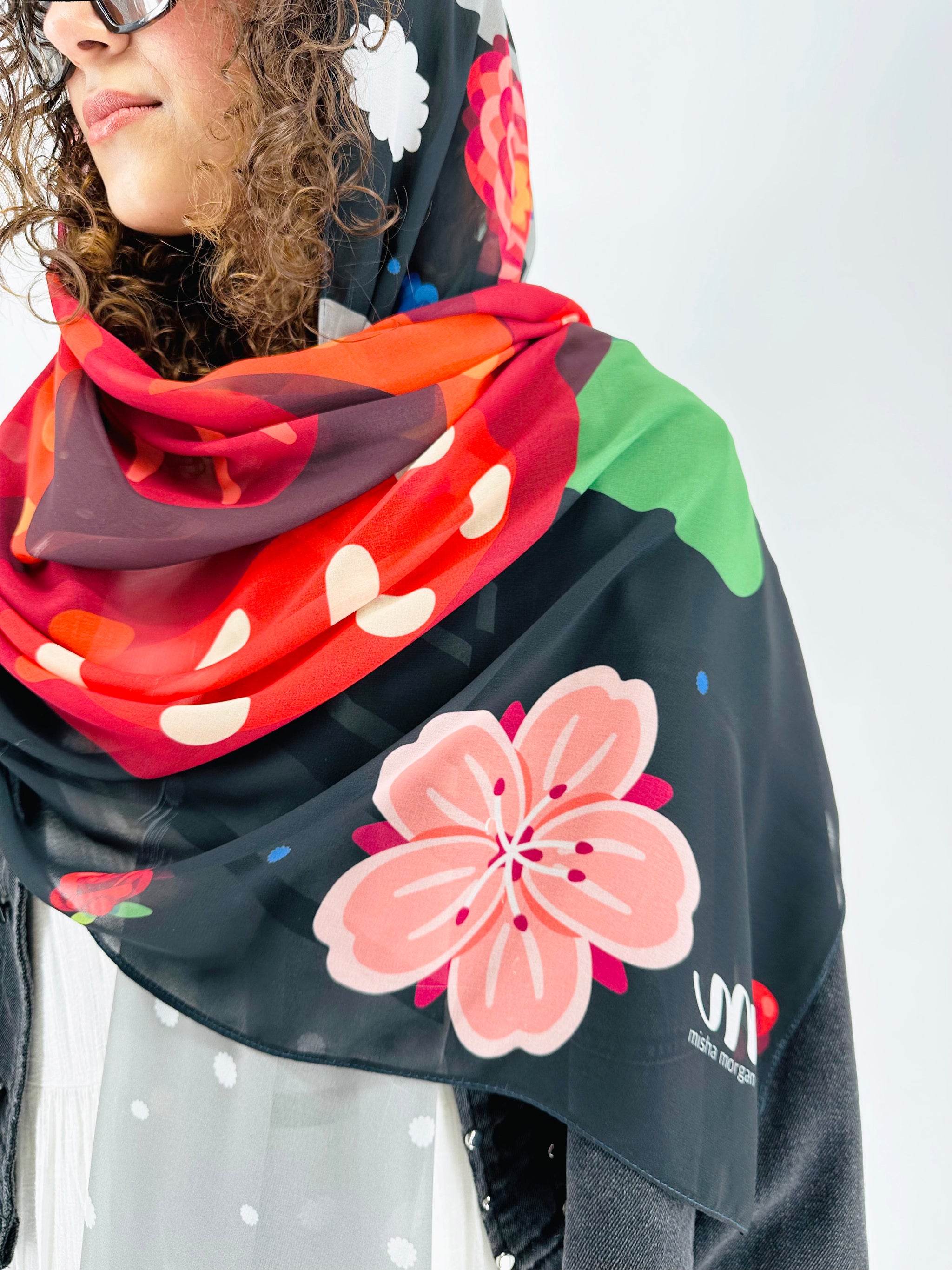 Enveloped in deep, velvety hues, Mid Night Bloom captures the allure of flowers that only blossom under moonlight. It’s mysterious, romantic, and utterly captivating—made for those who thrive in the beauty of the night. Drape it over your shoulders and step into an evening filled with possibilities.